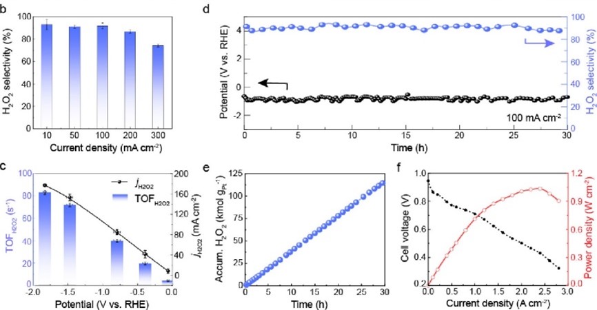 本工作中,作者制备了两种碳纳米管负载的Pt-N-C单原子催化剂用于ORR,在0.3 VRHE 电位下,实现了H2O2产物选择性从10%至85%的调节。结合电催化周转频率TOF测定,以及软/硬线X射线吸收谱XAFS、核壳分离纳米粒子增强拉曼光谱SHINERS、DFT理论计算分析,证明了Pt-N-C结构中第一壳层的吡啶-N和吡咯-N配位有利于O2转化为H2O,而引入第二层石墨-N掺杂可以微调Pt中心位点的电子结构,导致*OOH的结合强度减弱,从而主导了O2转化为H2O2过程。该工作揭示了单原子位点附近微观结构和性能间的构效关系,为高选择性和高稳定性单原子类催化剂设计提供了研究基础。