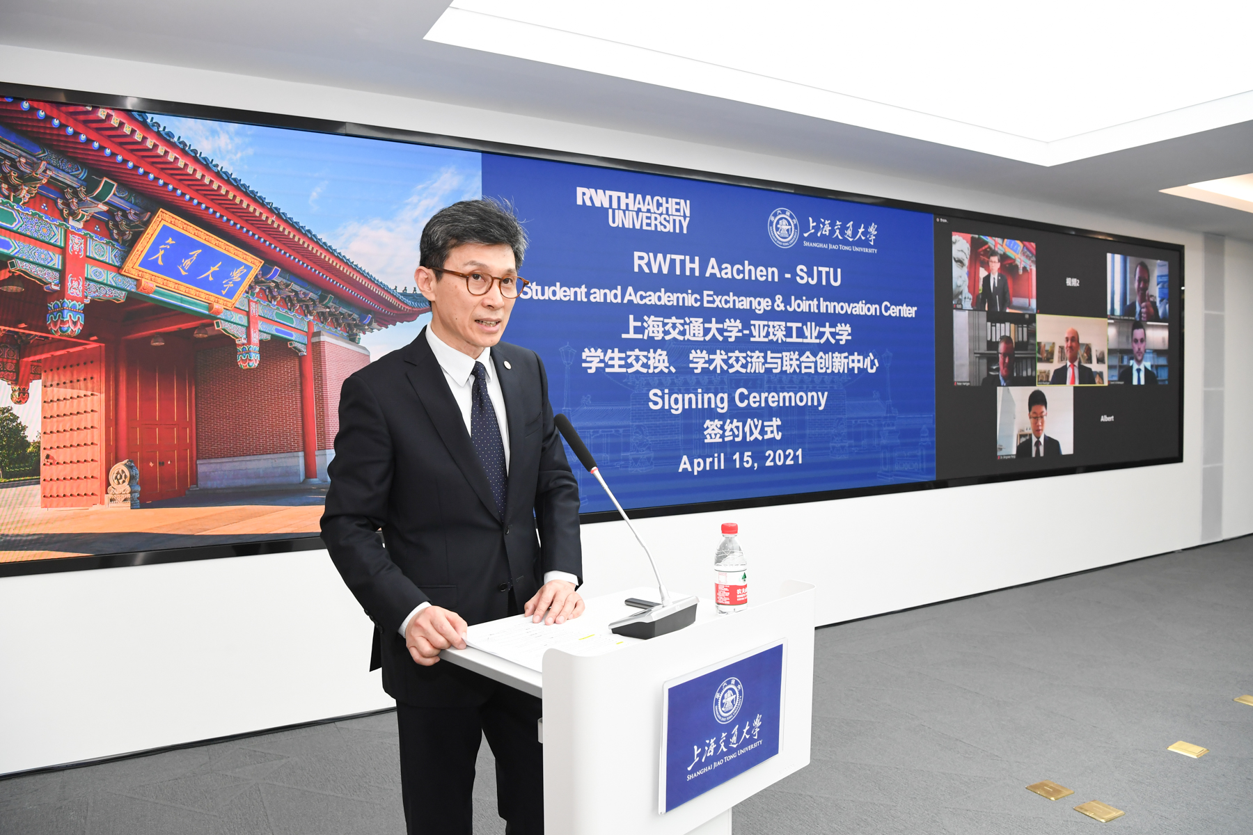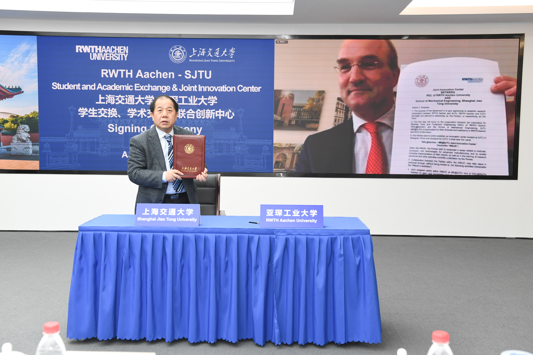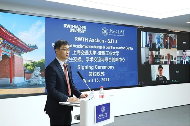 On April 15, 2021, the Signing Ceremony of RWTH Aachen - SJTU Student and Academic Exchange & Joint Innovation Center was held at the Minhang Campus of Shanghai Jiao Tong University.