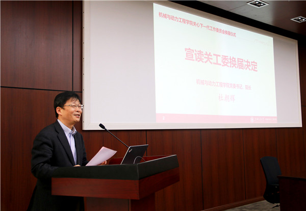 4月11日,机械与动力工程学院关心下一代工作委员会换届仪式暨专题党课在振华会议室举行。上海交通大学关工委常务副主任、国际与公共事务学院代理院长、马克思主义学院教授、机械与动力工程学院1980届校友胡近,上海交通大学关工委副主任、校党委组织部特邀党建组织员陶燕敏,上海交通大学关工委秘书长、机械与动力工程学院1976届校友吴玉瑛,机械与动力工程学院原党委副书记许颖一,学院原副院长陈关龙,汽车工程研究院退休教师、学院1976届校友成忠藩,学院党委书记、院长杜朝辉,党委副书记顾希垚,学生党总支书记陶晓红,学生党员及入党积极分子参加活动。活动由顾希垚主持。