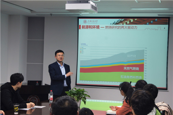 第一场由李玉阳为大家进行分享,主题为《探索燃烧与火焰的奥秘——兼谈科研与本科生科创训练》。李玉阳从燃烧技术的发展谈起,向同学们由浅入深地解释了燃烧所包含的复杂的化学反应和流动现象,以及对二者进行解耦并开展深入研究的必要性。此外,他还向同学们介绍了燃烧的完备性分析,燃烧中的微观化学结构的完备解析以及一系列新颖的燃烧反应机理和燃烧反应动力学模型。之后同学们针对李玉阳的研究提出了一些自己的疑惑,在他的解答下,对这些研究有了更深入的理解。