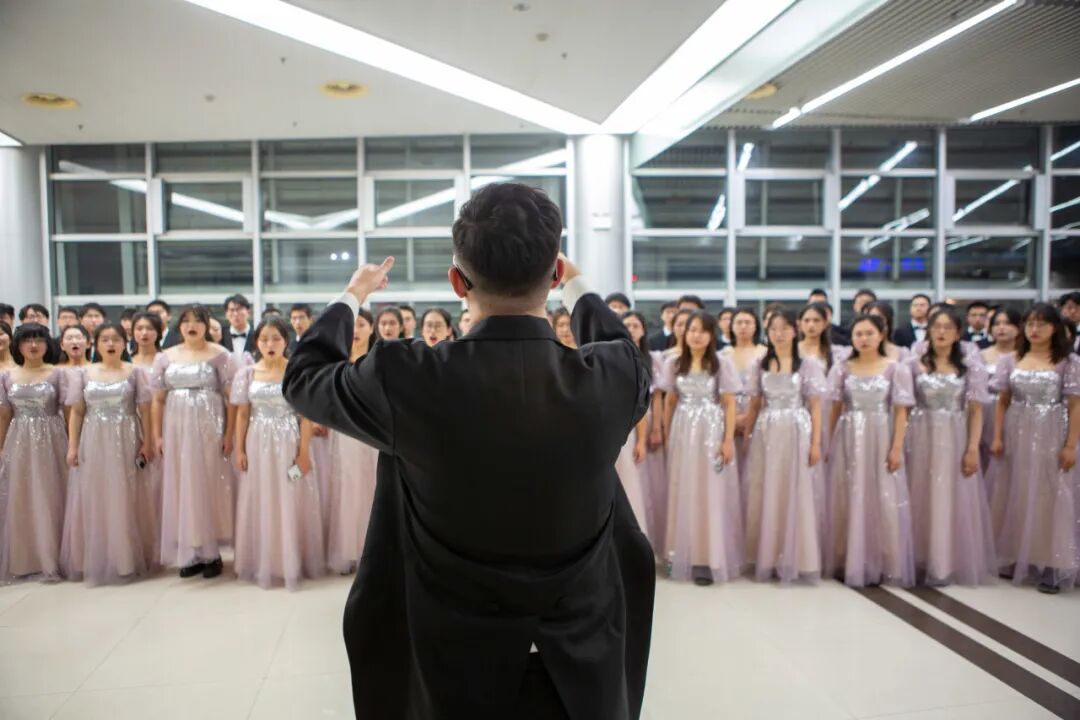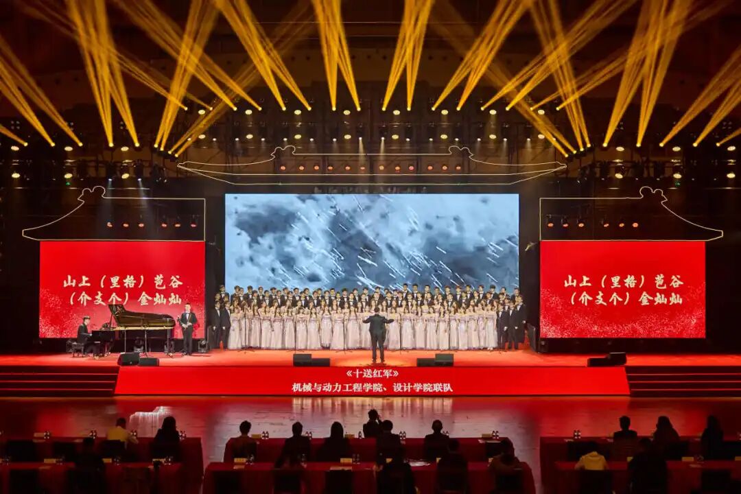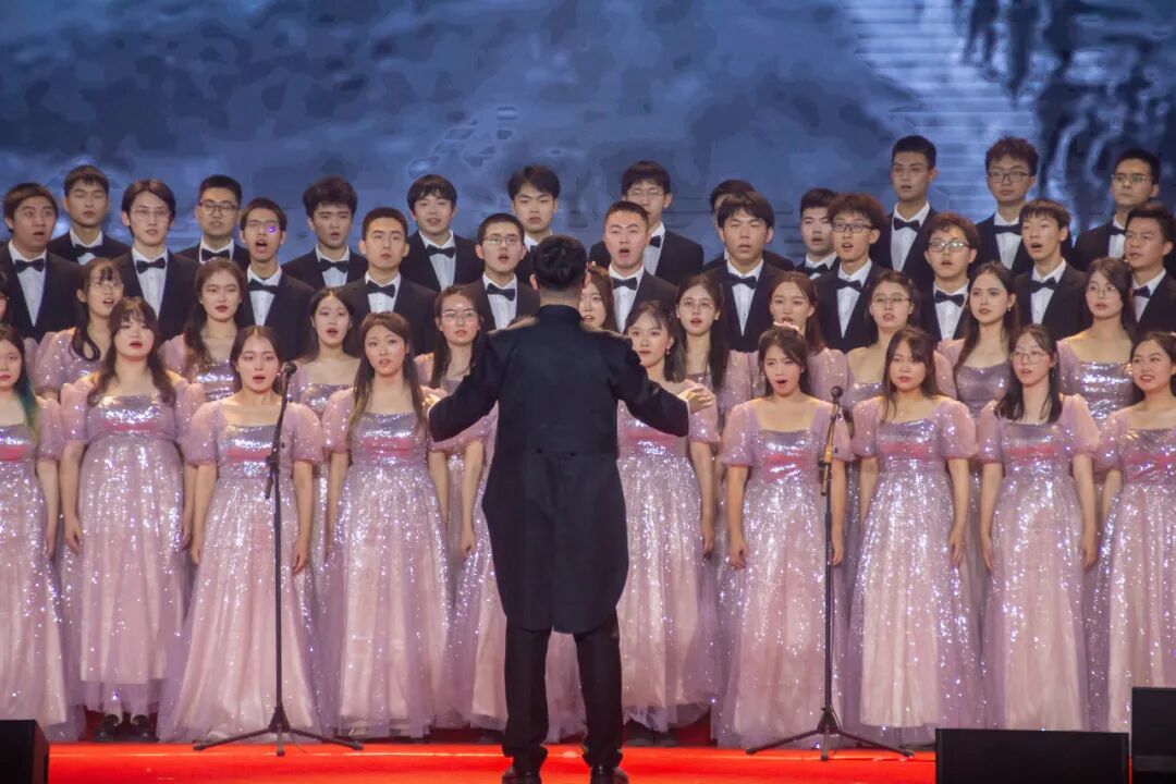 歌声穿越百年,在历史的长河中奔流不息。回首,我们牢记前人的奉献;向前,我们扛起时代的担当。在第一个音符响起之时,我们早已认准方向,背上行囊,踏上追寻梦想的长征路,走向继往开来的新明天!