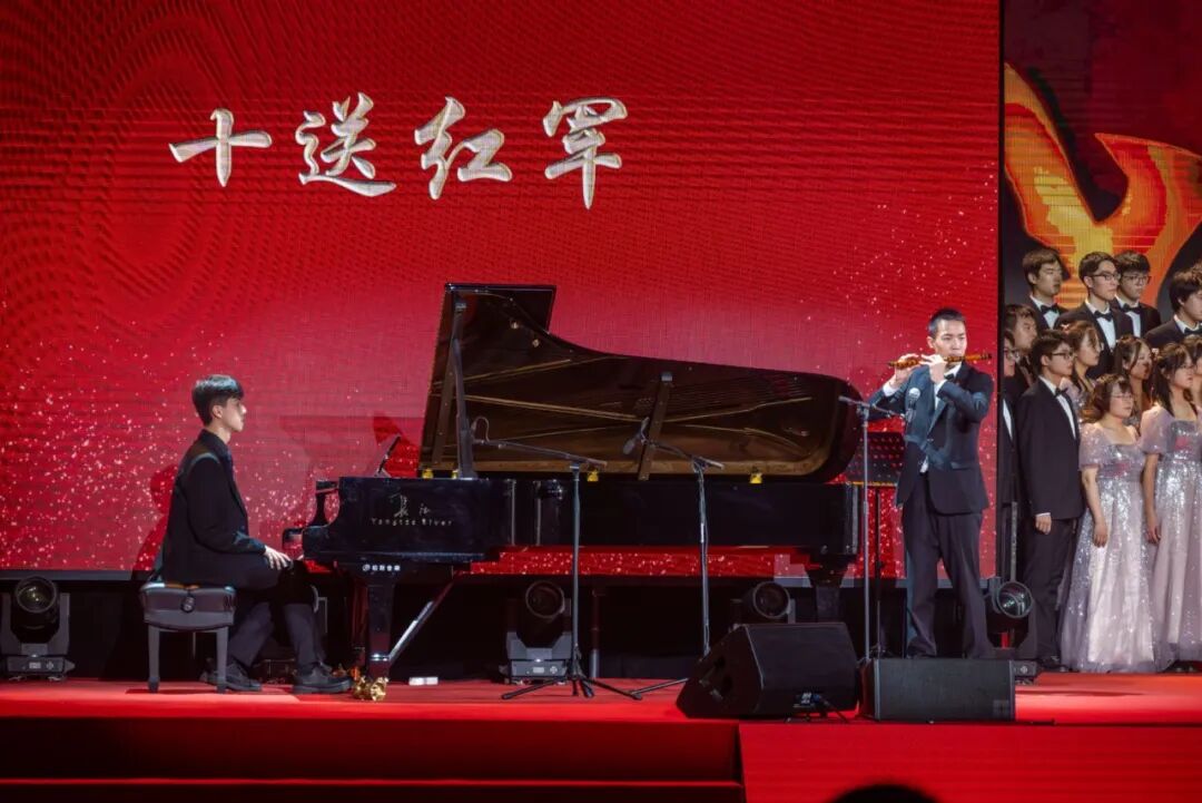 十送红军,留下永存心间的不舍,迎来革命胜利的希望。哀婉悠长的歌声似从天边飘来,似从百年前的那个秋天飘来。交织起伏的和声传递着百般留恋,回旋往复的旋律诉说着绵延深情。从“一送”到“十送”,从哀婉到激昂,歌声与钢琴声相伴着层层推进,听众同送别红军的人民一起思绪万千。触动心弦的歌声里,有难舍的忧伤,有诚挚的感谢,有对红军的美好祝愿,更有对胜利的殷殷期盼。