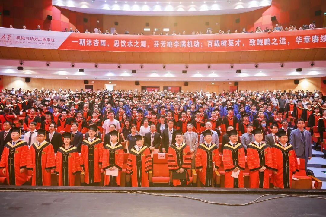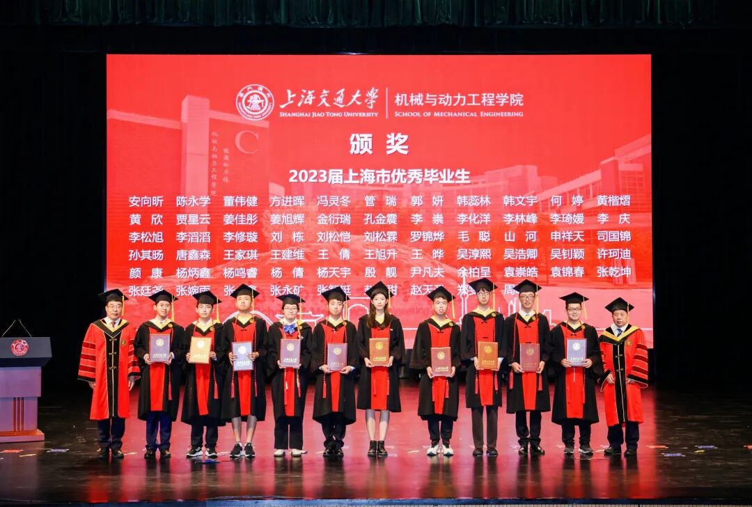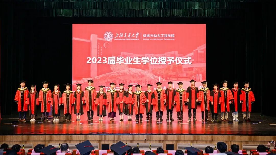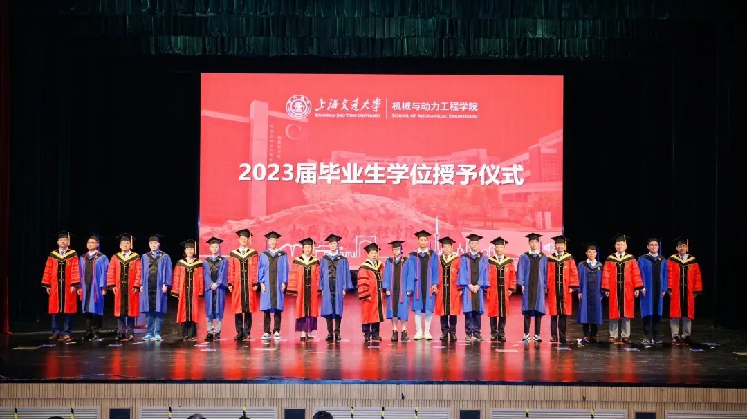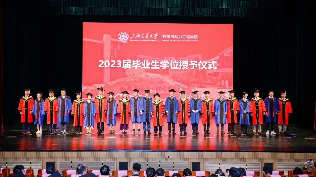 6月21日, 举行2023届毕业典礼暨学位授予仪式。中国工程院院士、上海交通大学原校长林忠钦,上海交通大学党委常委、副校长奚立峰,副教务长吴静怡,北斗三号全球卫星导航系统北斗卫星副总设计师、2002届博士校友刘天雄,机械与动力工程学院院长杜朝辉,党委书记林立涛,副院长李玉阳、朱磊、瞿叶高,孟光教授、王丽伟教授、潘尔顺教授等教师代表,以及2023届班主任等共同出席。典礼由学院党委副书记张执南主持。