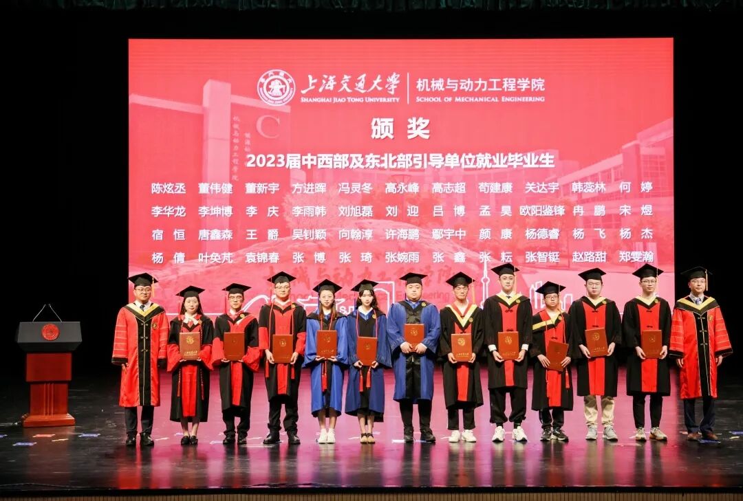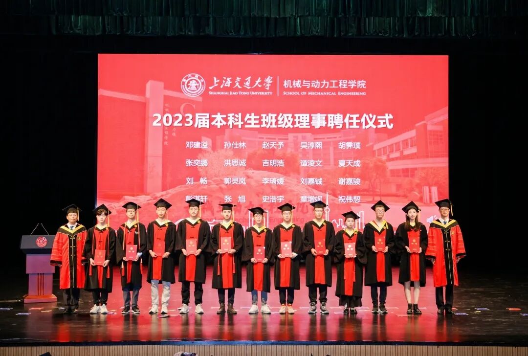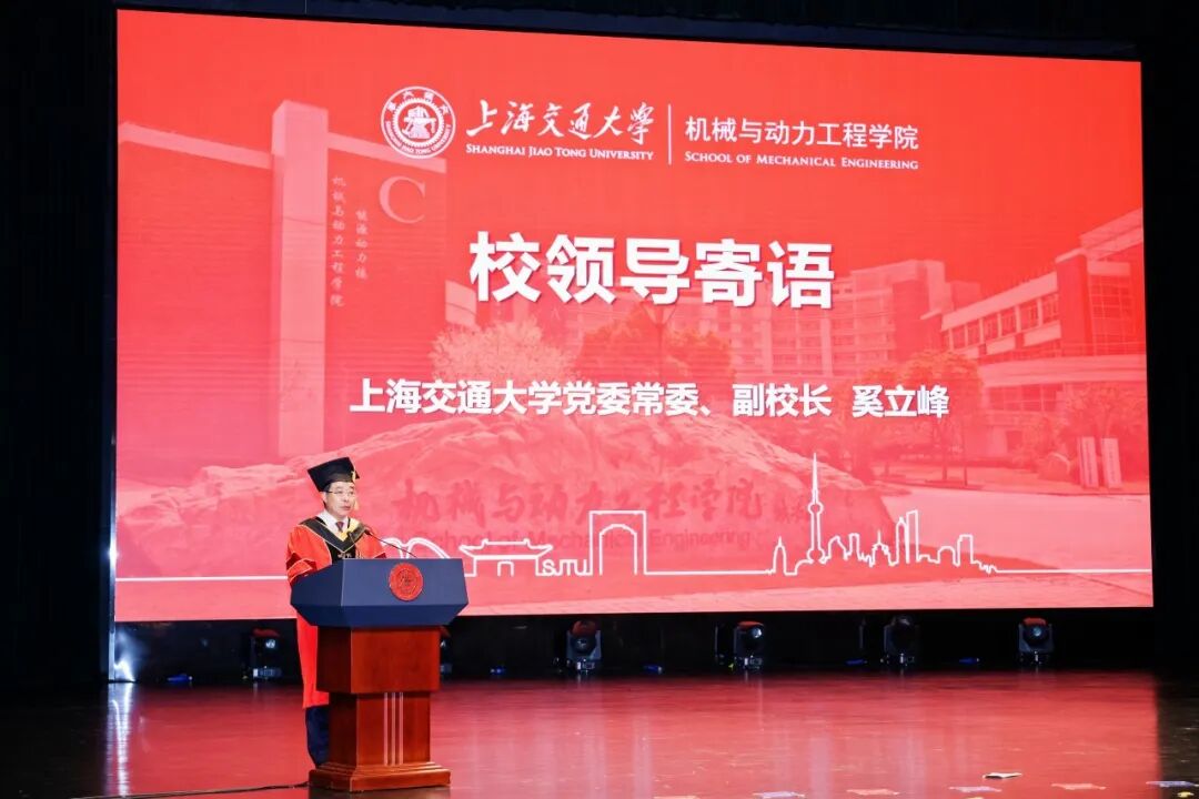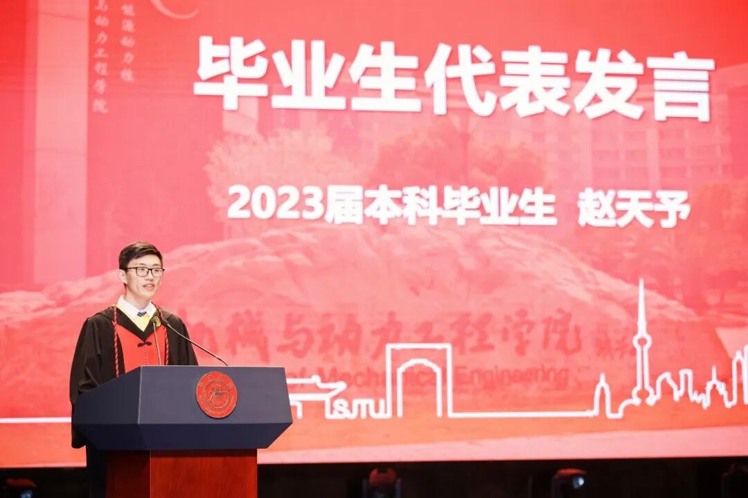 6月21日, 举行2023届毕业典礼暨学位授予仪式。中国工程院院士、上海交通大学原校长林忠钦,上海交通大学党委常委、副校长奚立峰,副教务长吴静怡,北斗三号全球卫星导航系统北斗卫星副总设计师、2002届博士校友刘天雄,机械与动力工程学院院长杜朝辉,党委书记林立涛,副院长李玉阳、朱磊、瞿叶高,孟光教授、王丽伟教授、潘尔顺教授等教师代表,以及2023届班主任等共同出席。典礼由学院党委副书记张执南主持。