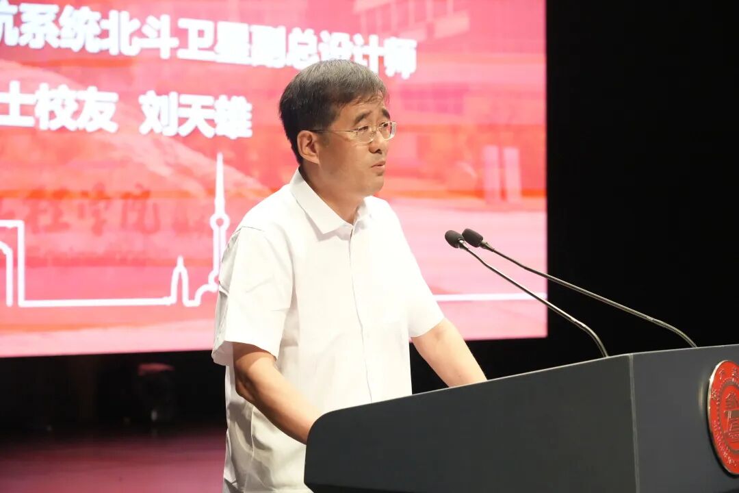 刘天雄分享了自己追随钱学森学长,从事北斗卫星导航系统导航卫星总体设计工作的航天报国经历,鼓励毕业生们要有理想、有信念、有志气、有追求、有目标、有奋斗、有努力、有收获、有斗争精神、有斗争本领。他希望更多的年轻校友投身中国航天,在科技自立自强、富国强军和中华民族复兴伟大事业中有更大作为。