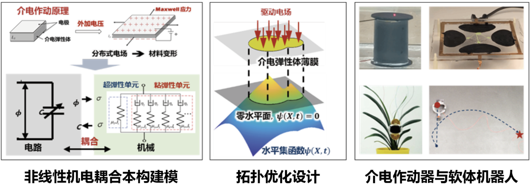 项目揭示了介电弹性体在分布式电场作用下的大变形、机电耦合、粘弹性非线性等作动行为与响应规律,提出了介电作动响应的非线性机电耦合本构建模方法,发展了基于形状导数与水平集的介电作动-材料-结构一体化设计理论与方法,提出了基于粘弹性非线性逆补偿的实时跟踪控制方法,研制了多种新颖构型与运动性能的介电作动器、人工肌肉与软体机器人系统。项目形成了介电作动软体机器人的设计理论与控制方法,研究成果有助于推动其在柔顺操作、极端环境、康复医疗等领域中的应用。