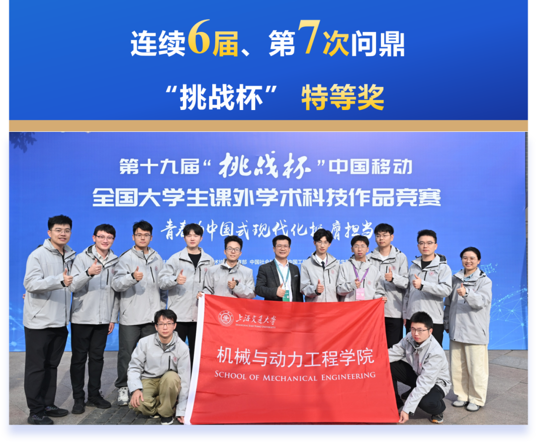 另获中国大学生机械工程创新创意大赛毕业设计大赛金奖,全国大学生节能减排竞赛特等奖,第六届机械原理国际奥林匹克竞赛团体和个人双冠军,国家级科创年度获奖594人次。