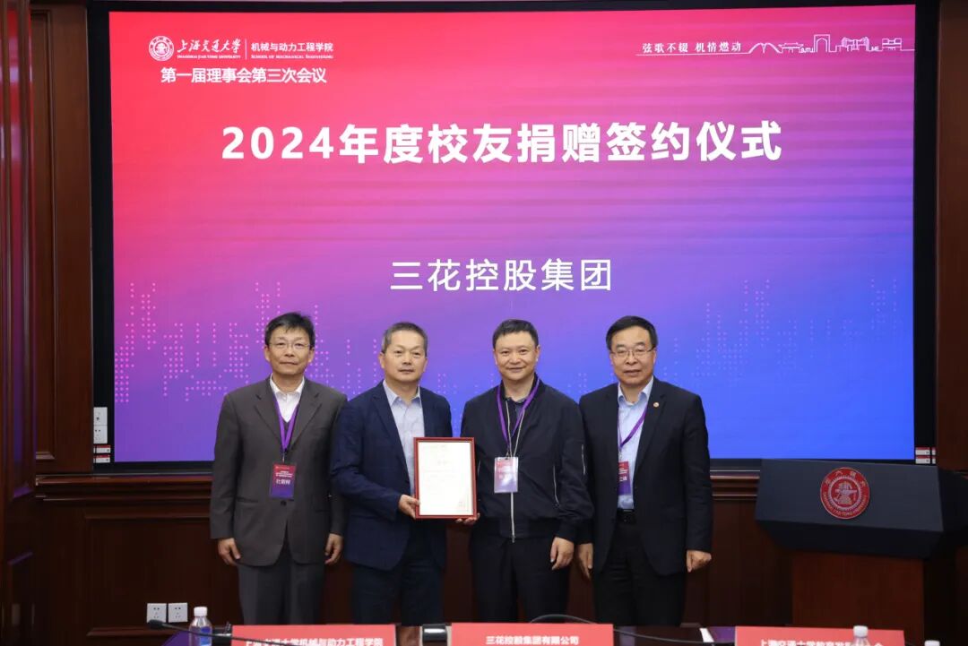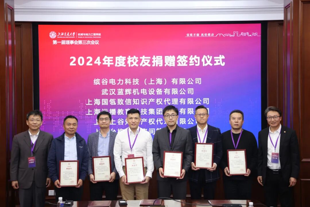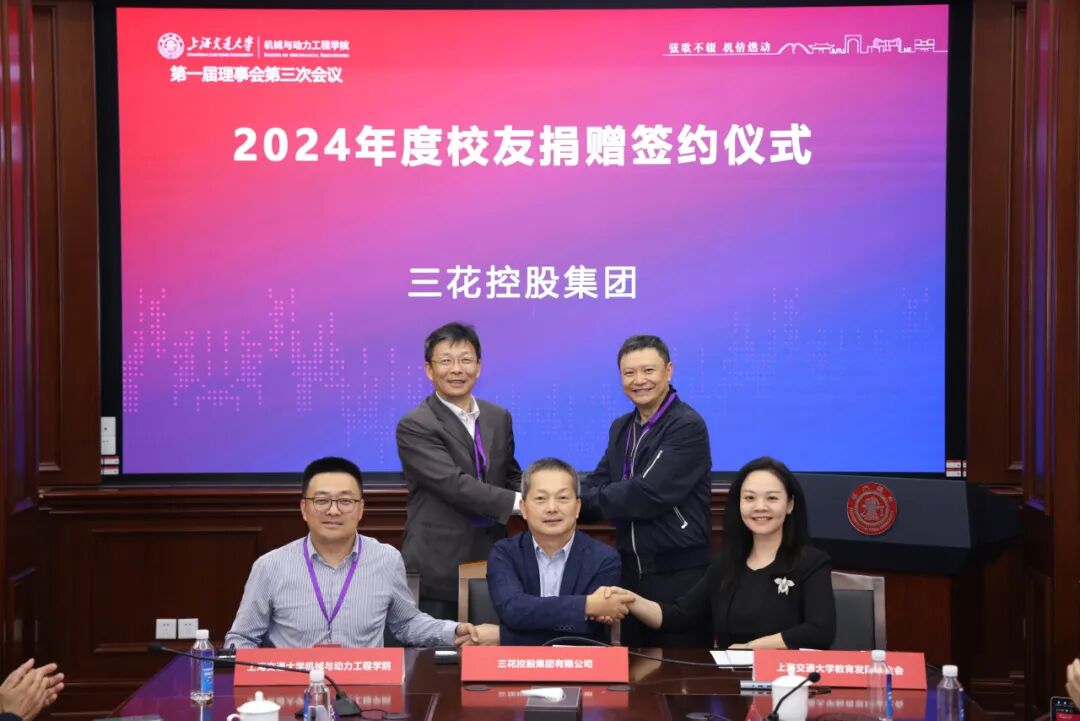 2024年度校友捐赠签约仪式同期举行,校友企业三花控股集团有限公司、上海允格众创空间管理有限公司、缤谷电力科技(上海)有限公司、武汉蓝辉机电设备有限公司、上海国瓴致信知识产权代理有限公司、上海远播教育科技集团股份有限公司、上海上谷知识产权代理有限公司等校友企业代表,先后签订了捐赠协议。上海交通大学发展联络处副处长、基金会副秘书长李毅、校友总会办公室副主任张立强参加了签约仪式。