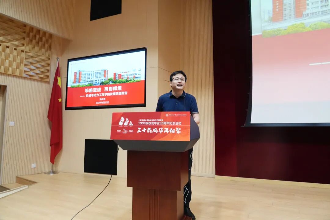 6月22日上午,机械与动力工程学院校友相聚交大闵行校区菁菁堂,共同参与毕业30周年纪念大会。来自全校各院系1000余位校友出席本次纪念大会,学院共计300余位校友返校参加活动,共同了解学校发展近况,回顾校园读书时光,此次活动发起人、学院1994届本科校友薛江波作为校友代表发言。