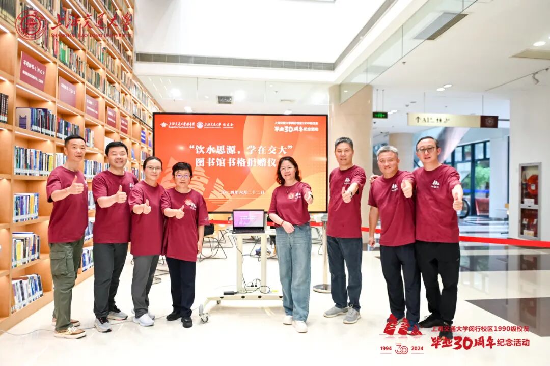 “饮水思源、学在交大”捐赠仪式在主图书馆举行,学院60102、60301、60302、20103四个班级参与了图书馆书架墙、思源湖校友林的捐赠。