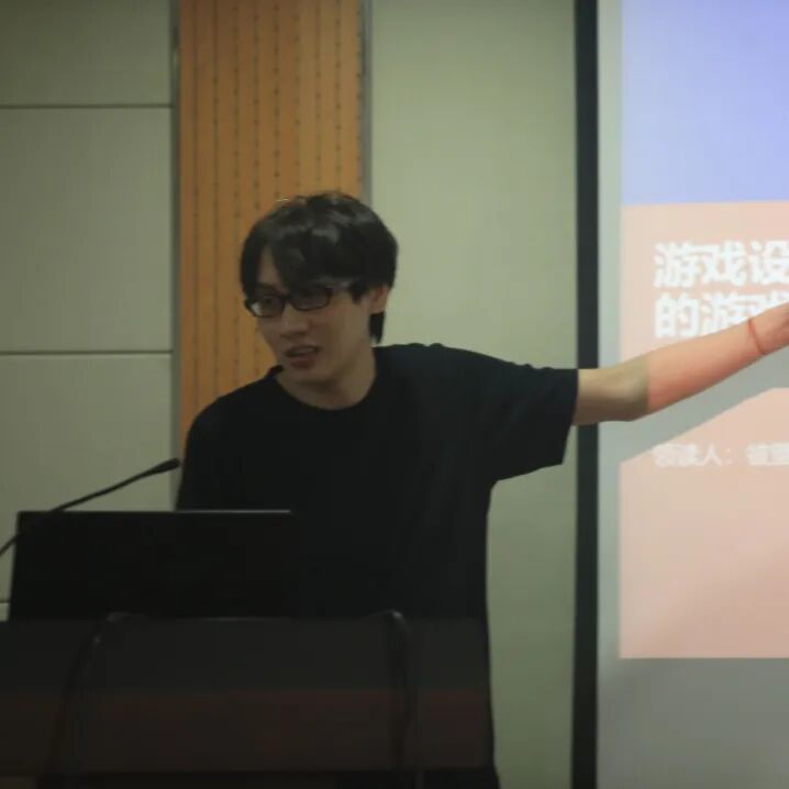 上海石汐数字科技有限公司总经理兼首席产品官崔磊学长,专注传统行业数字化实践。作为资深游戏玩家,崔磊学长不仅科普了游戏的定义、发展史、四象限等基本知识,还带领大家体会了游戏中的画面、沉浸等艺术元素,现场展示了《GRIS》、《八方旅人》等经典游戏作品。“游戏是现代艺术语言”,崔磊学长说,故事向的游戏相当于看一本书,体验感更真实。“心流到位,你就会沉浸”,游戏能让人进入心流。
