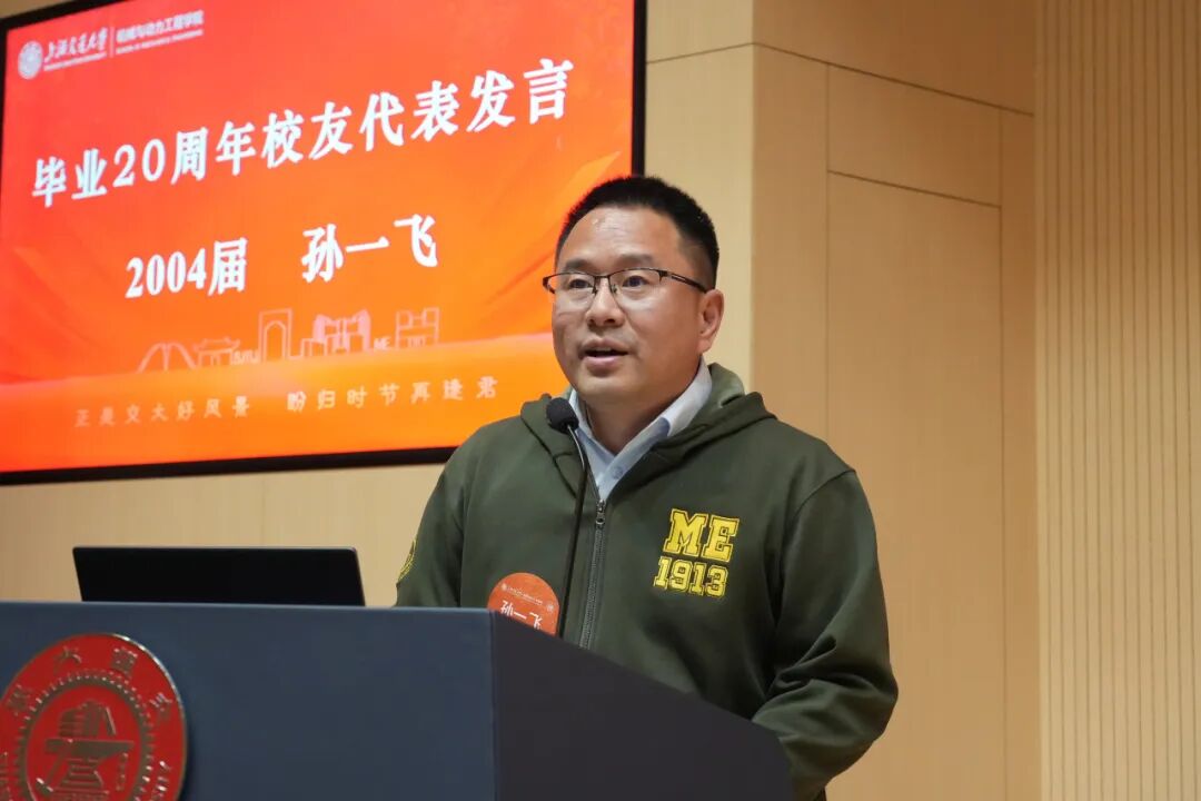 2004届校友孙一飞作为毕业20周年校友代表,表示2004届毕业生中涌现出一批为国家重大装备研发、行业发展以及学术探索等做出积极贡献的校友,呼吁校友们把自己20年的行业积累和学院的发展结合起来,为学院人才培养、科学研究贡献力量。