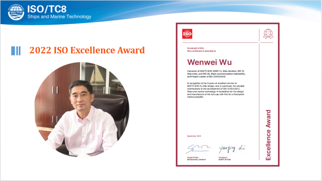 2023年9月,国际标准化组织船舶与海洋技术委员会第42届全体会议召开,中国船舶科学研究中心(中国船舶集团七〇二所)副所长、学院2006届硕士校友吴文伟荣获本年度国际标准化组织卓越贡献奖。