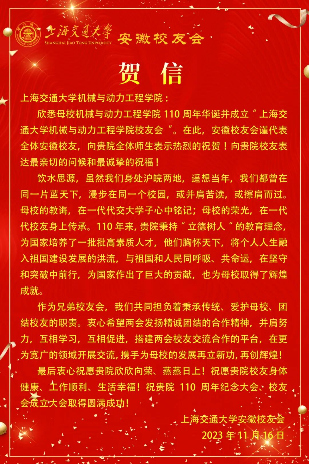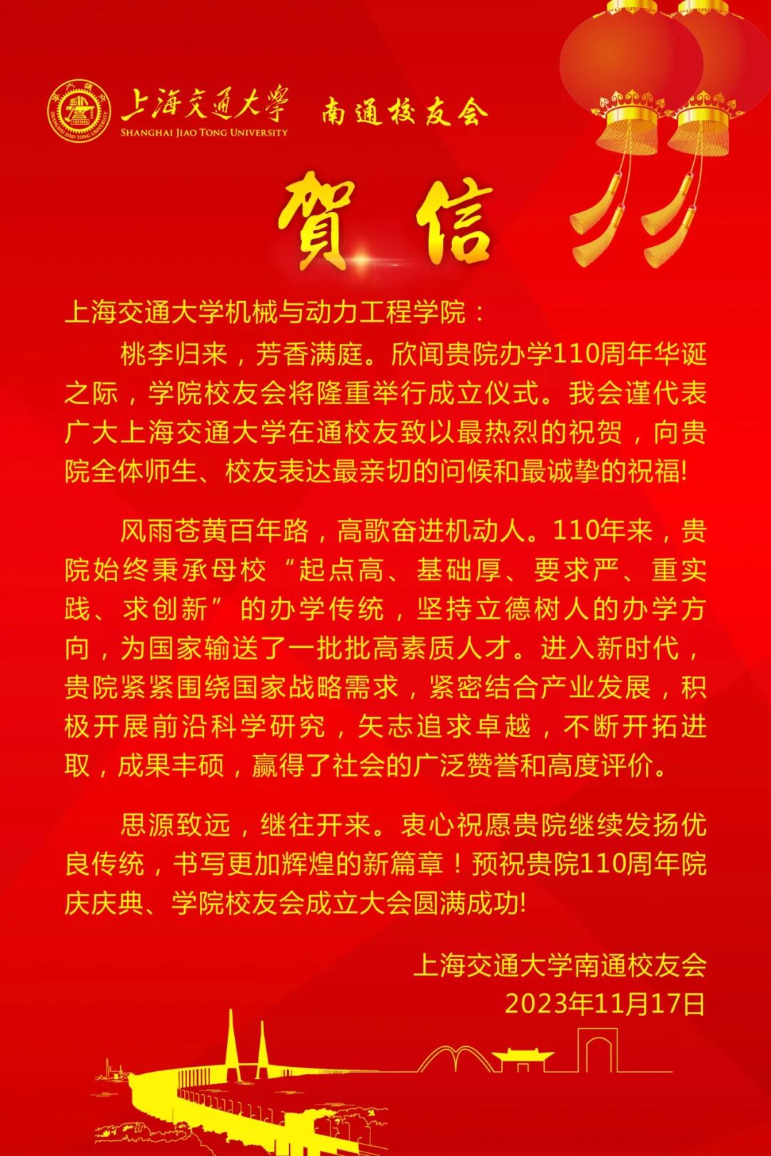 大会收到了来自香港校友会、广东校友会、杭州校友会、南通校友会、苏州校友会、大连校友会、安徽校友会等地方校友会发来的贺信。