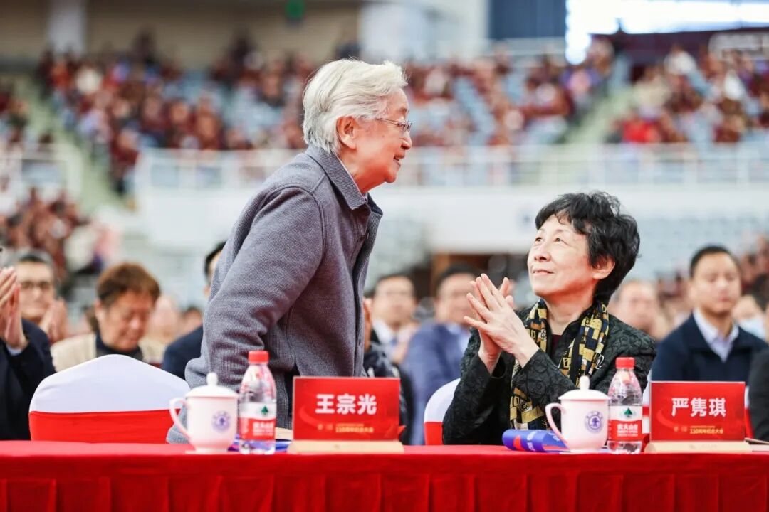 11月18日上午, 110周年纪念大会在闵行校区霍英东体育中心隆重举行。第十一届、十二届全国人大常委会副委员长、民进中央原主席严隽琪,上海交通大学党委书记杨振斌,原党委书记王宗光,原党委书记马德秀,原校长谢绳武,原校长、中国科学院院士张杰,原校长、中国工程院院士林忠钦,校领导及老领导,两院院士谢友柏、丁汉、徐青,合作单位和捐赠单位嘉宾,机关部处和院系代表、各界校友代表,退休教师以及在校师生代表共计4000余人参加纪念大会,共襄盛举,共叙情谊,共谋发展。