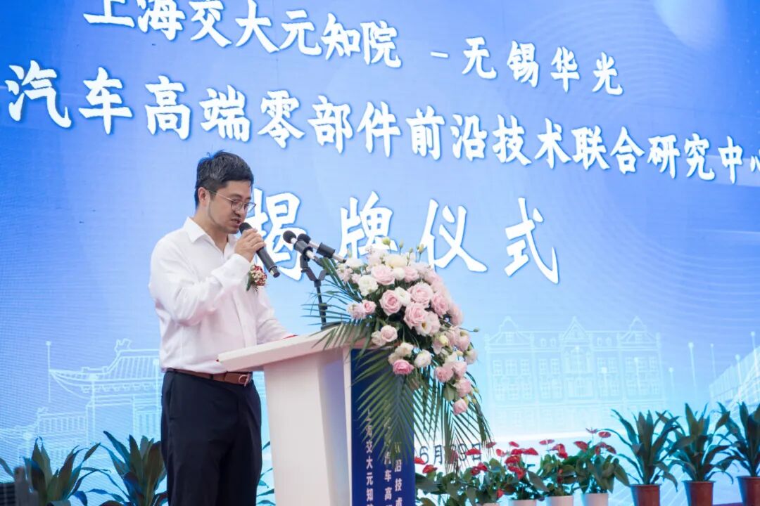上海交通大学党委常委、副校长奚立峰,无锡市政协副主席、区委书记吴建元出席活动并分别致辞。无锡华光汽车部件集团有限公司董事长薄铸栋、2001届机械工程及自动化专业本科校友、无锡华光汽车部件科技股份有限公司董事长、总经理薄可晨、 副院长朱磊,元知机器人研究院副院长盛鑫军、郑叶来等参加活动。