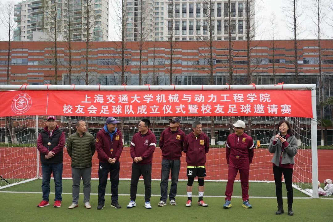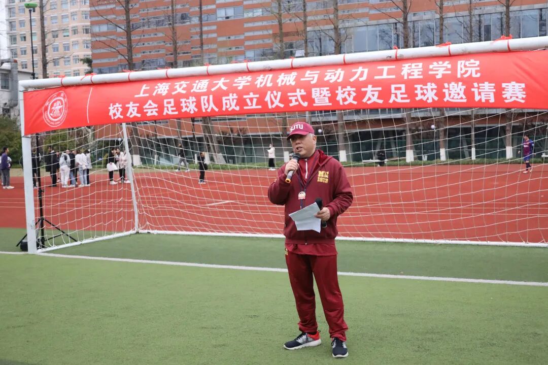 赵文杰为成立仪式致辞,机动学院作为上海交大最具实力、最富代表性、最有影响力的学院之一,学院足球队实力不凡,对机动学院校友会足球队的成立表示热烈祝贺,并送上了祝福与期许。