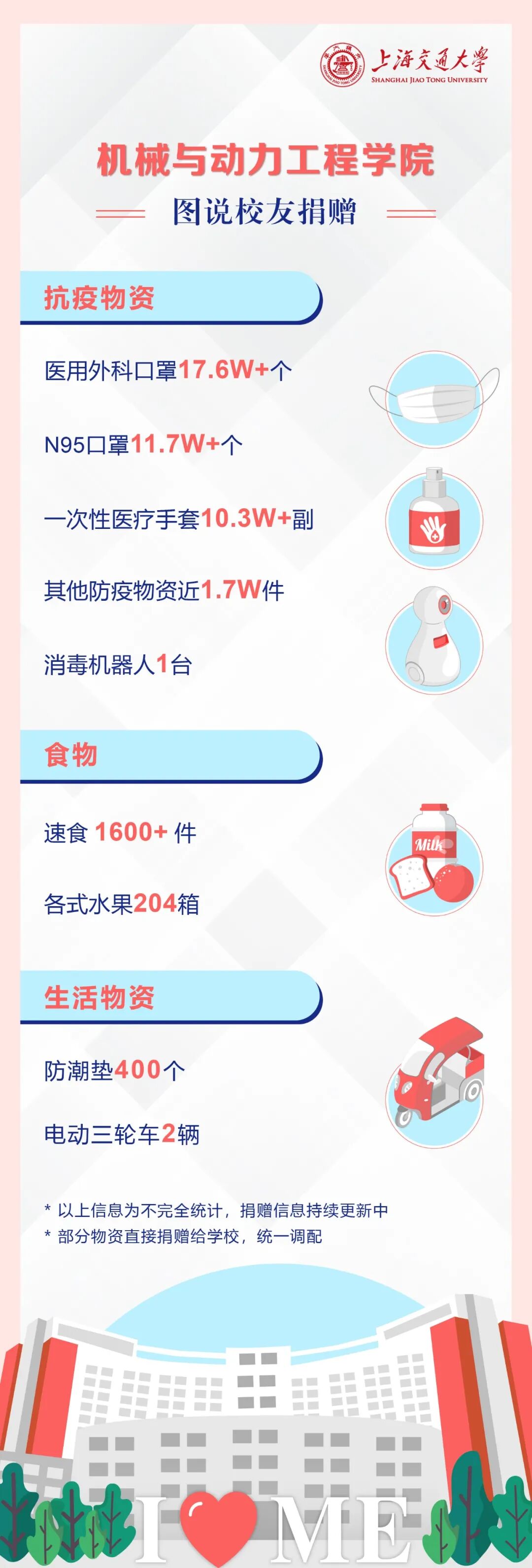 学院科研成果转化企业上海氢晨新能源科技有限公司、上海治臻新能源股份有限公司、海安上海交通大学智能装备研究院、节卡机器人、术锐技术有限公司、上海唐锋能源科技有限公司,以及上海兰桂骐技术发展股份有限公司等爱心企业,纷纷向学院捐赠大量物资,为学院师生加餐,暖心又暖胃。