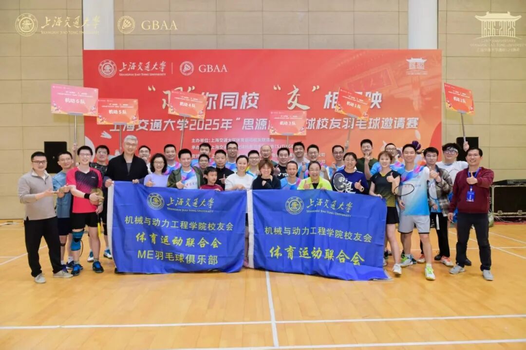 2025年校庆日“思源杯”全球校友羽毛球邀请赛,机械与动力工程学院校友会精心组织了六支队伍和志愿者团队共35位校友参赛。六支队伍取得了五个小组赛第一,并在十六强中占据四席,展现了努力拼搏、携手并进的机动精神,收获了运动乐趣和校友情谊。