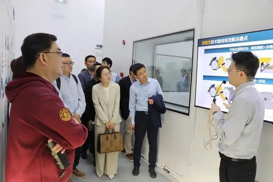 第二家参访企业臻锂新材专注于新能源产业中锂电池复合集流体的研发,创始团队均来自 ,长期深耕新能源新材料领域。学院2022届本硕博校友、臻锂新材联合董事长兼总经理李骁博、2021届本硕博校友、副总经理高杰热情接待了大家,为大家详细介绍了公司的发展情况,并带领大家参观了公司的研发试制中心。李骁博表示:“团队将继续深耕涂层制备核心技术,持续推动产品降本增效,与产业链合作伙伴共同推进复合集流体规模化应用。”各位校友针对复合集流体关键部件产业化等议题进行了深入交流。