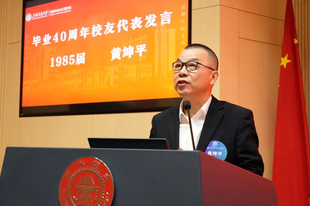 1985届校友黄坤平、1995届校友王晓明、2005届校友许欣,分别作为毕业40周年、30周年和20周年的校友代表发言,回忆了求学交大的青葱岁月,表达了对母院培育之恩的深切感激,呼吁大家积极为学院的发展贡献力量。