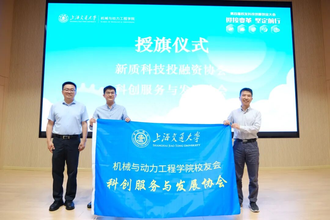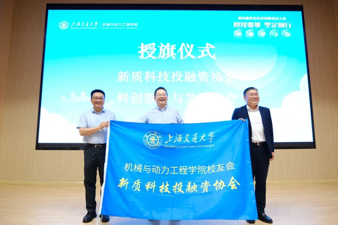 会上,机械与动力工程学院校友会新质科技投融资协会、科创服务与发展协会正式成立,朱磊为协会授旗。