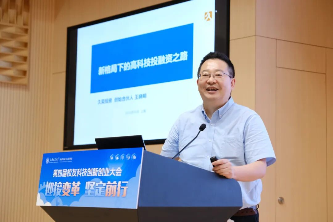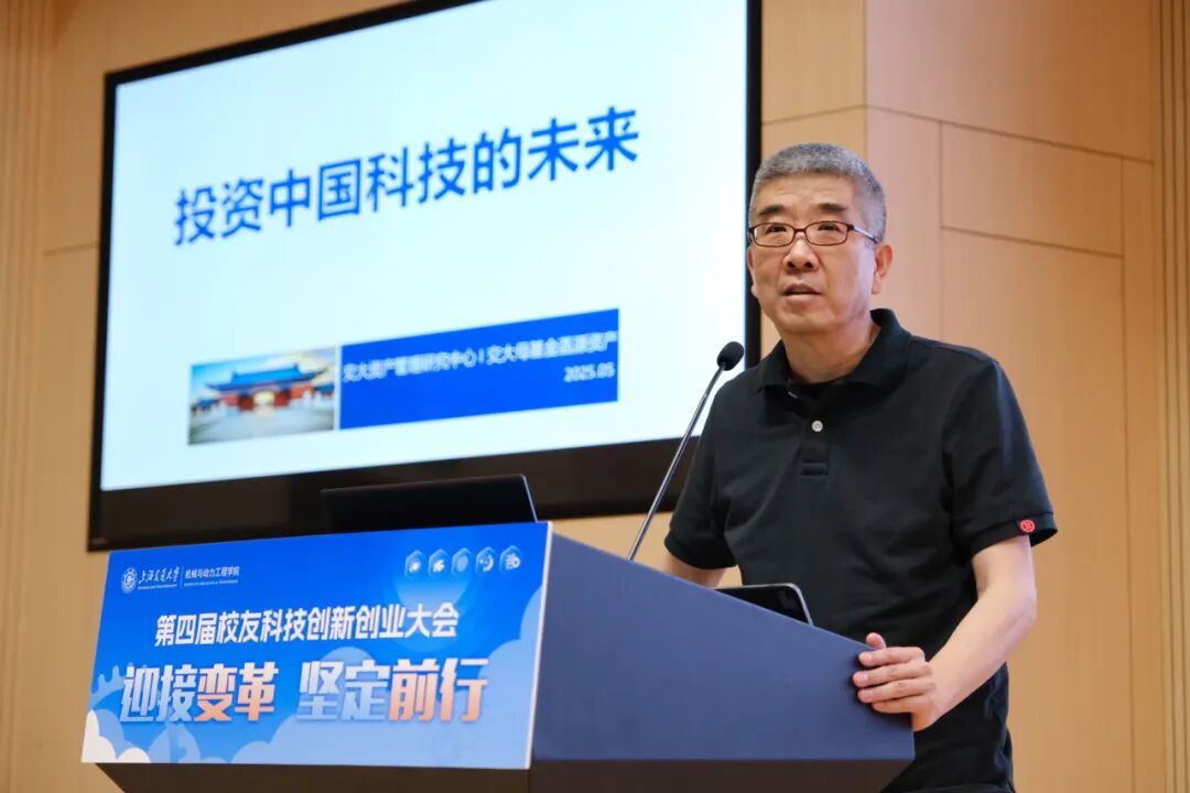 1989届本科、1992届硕士校友、上海交通大学未来产业母基金投资委员会委员、交大资产管理研究中心执行主任、菡源资产合伙人丁钢做了题为《投资中国科技的未来》的主题演讲,激励校友们未来在半导体、人工智能、新能源等科技领域大展宏图。