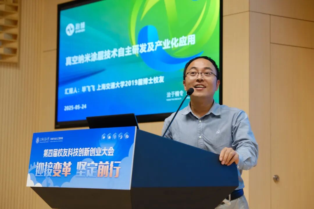 2016届硕士、2019届博士校友、上海治臻新能源股份有限公司研发总监毕飞飞,作为学院科研成果转化项目代表,分享了"真空纳米涂层技术"从实验室走向产业化的历程。