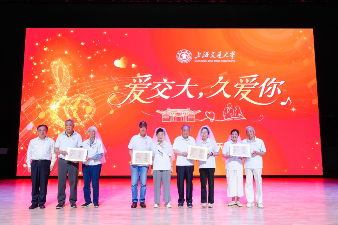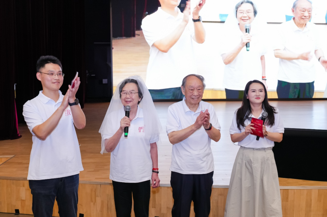 学院顾安忠、杨敏之伉俪分享爱情故事,在交大从事科研与教学六十余年,一家四代交大人,将“交大情”代代传承。活动现场,他们也收到了母校为金婚校友伉俪特别定制的“爱情证书”。