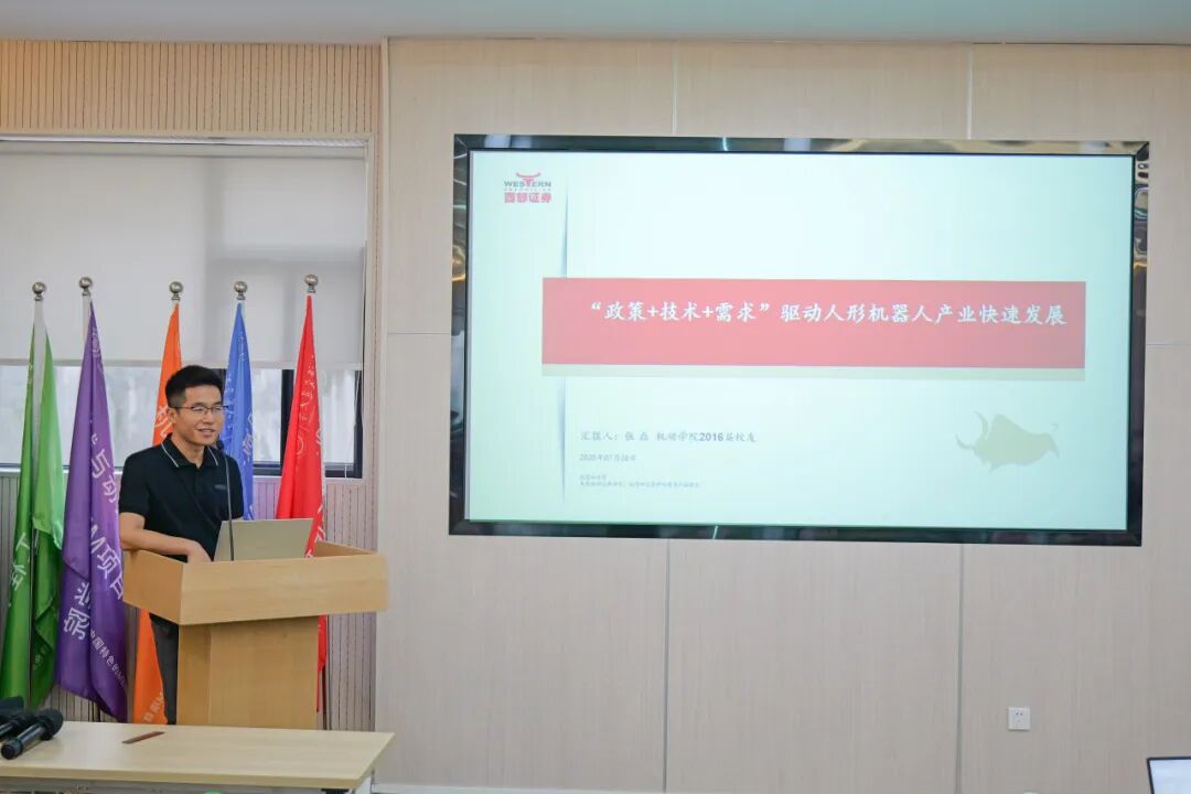 2016届硕士校友、西部证券研究所资深行业分析师张磊,以 “具身机器人的生态链” 为主题进行分享。凭借6年研发及管理经验与3年二级市场行业研究经验,他从行业视角出发,全面解析了具身机器人生态链的构成要素、各环节发展现状及未来趋势,为在场校友呈现了具身机器人产业的全景图谱。