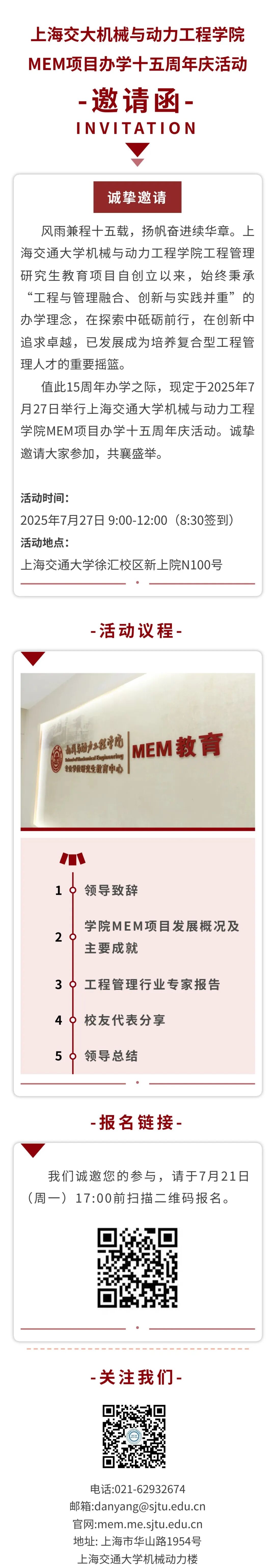 活动报名丨机械与动力工程学院MEM项目办学十五周年庆活动